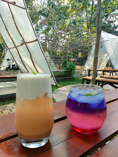 Di sekitaran kafenya, berjejer bunga dan buah yang makin mempercantik pemandangannya. Ada bunga telang yang bisa dibuat minuman. Begitu juga dengan markisa yang berbuah juga menjadi menu minuman di sini.